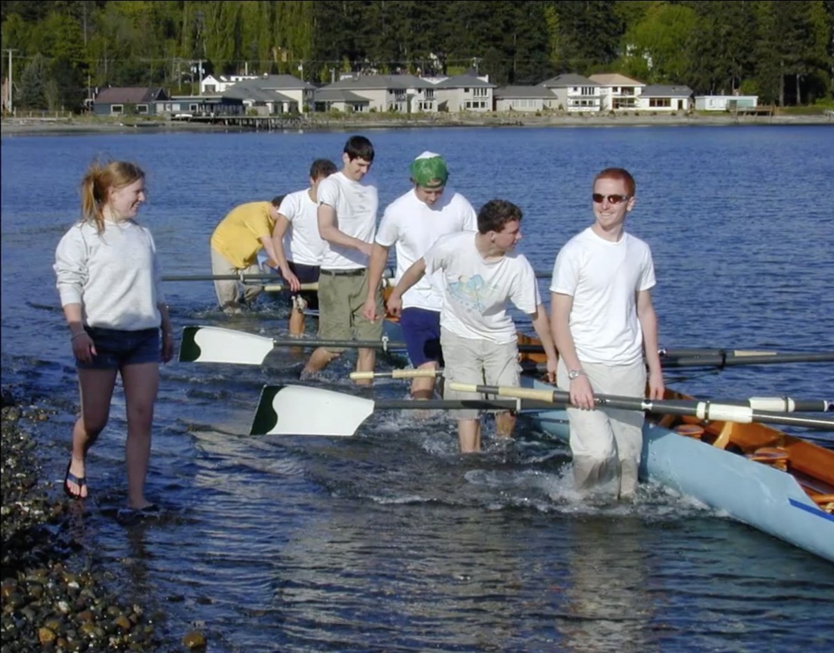 When Kacy Hamilton fell in love with rowing on Lake Union at the Pocock Rowing Center’s 1999 summer camp on Lake Union, she fell hard. Hard enough that when Kacy and her family moved to Bainbridge the next year and Kacy started classes at Bainbridge High School (BHS), she still took the ferry to Seattle and back every day to row before school. That grueling daily schedule led to family discussions about the need for youth rowing opportunities on an island community for which the sport was a natural fit. The discussions grew to also include Elizabeth Bailey, a fellow BHS athlete who had picked up rowing at Lake Washington as a replacement for swimming after breaking her thumb on a trampoline.